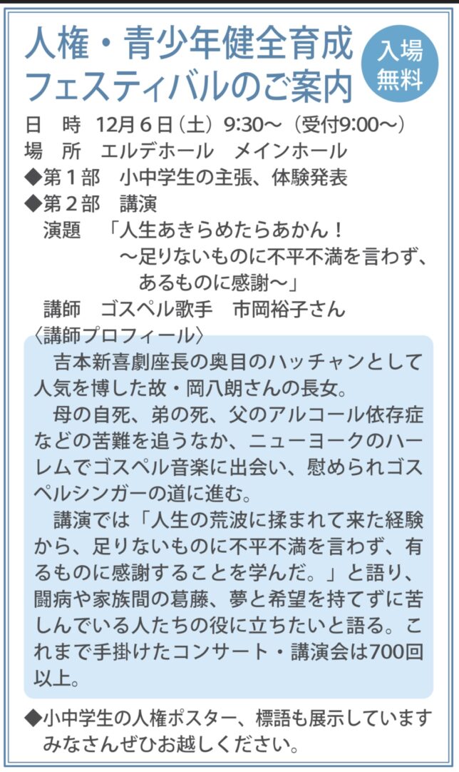 講演会:兵庫県福崎町人権・青少年健全育成フェスティバル